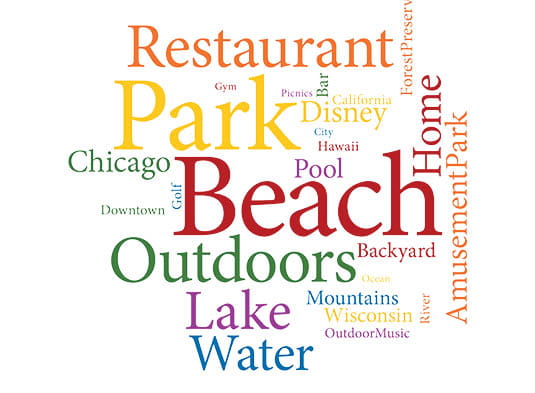 Top responses include: beach, park and outdoors.