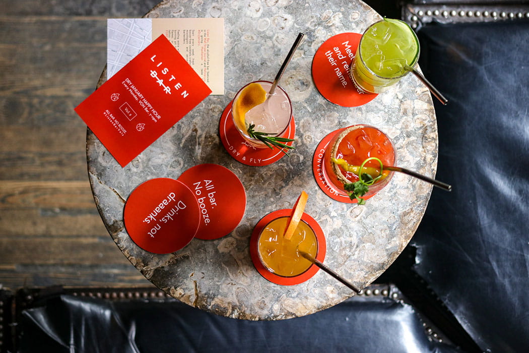 Located in NYC, Listen-Bar is a booze-free pop-up bar open only 1 night per month. All of their drinks are alcohol-free, and all of the bartenders are musicians. Their location includes everything you would want in a bar: pool-table, neon signs and good music. It’s just missing the alcohol. It has been described by the Wall Street Journal as “an establishment with complex and grown-up cocktails that taps into a growing alcohol-free movement.”