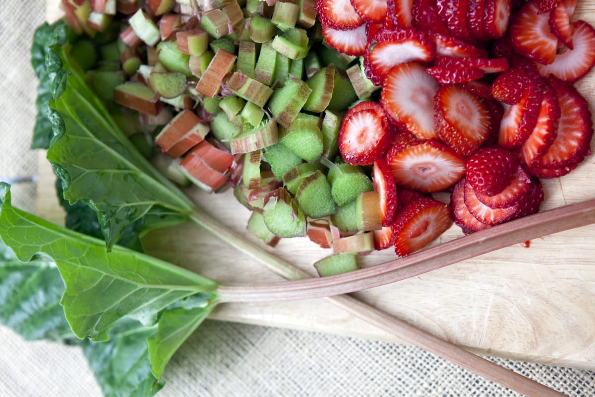 Part of the buckwheat family, rhubarb has thick, celery-like stalks and large leaves. The stalks are the only edible portion of the plant. Rhubarb is botanically a vegetable, but more commonly eaten as a fruit because of its extreme tart flavor. It is most commonly used in pies, tarts and sauces.
