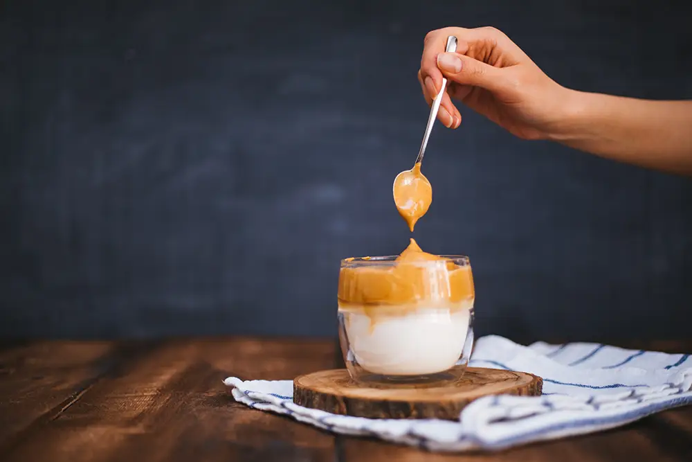 An at-home coffee trend sweeping the nation is Dalgona Coffee. This whipped coffee trend consists of mixing together equal parts of instant coffee, sugar, and water until if forms a frothy foam and then you pour it over the milk of your choice. This drink is described to be the opposite of a latte and is irrefutably tasty and super simple. | Insider