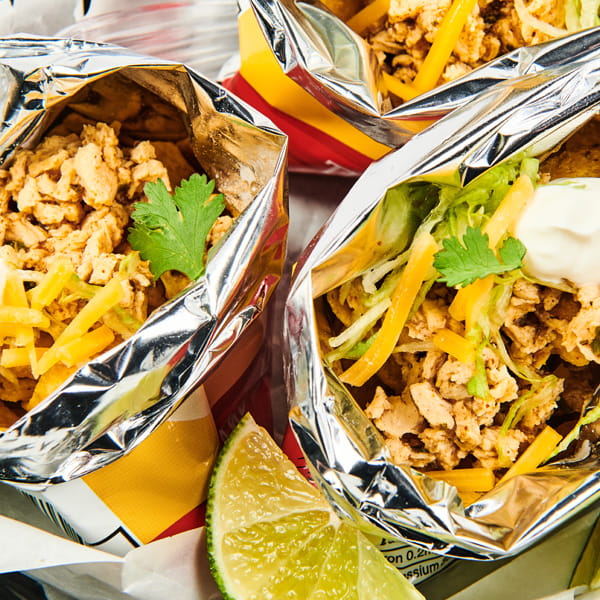 Inspired by the growth in festival food offerings and acceptance of plant-based, and my role as Scientist, I set off to create a fully vegan “chicken” walking taco. I incorporated a Cilantro Flavor Natural WONF plus a TrueTaste® Lime Flavor Natural which utilizes a subtle heat process to preserve flavor volatiles and deliver true-to-fruit profile. Lastly, I included a Chicken Type Reaction Flavor Natural which ensures that this taco really tastes like chicken!