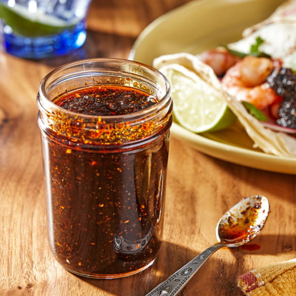 A versatile, thick, oil-based slightly spicy condiment made with seeds, nuts, garlic, and an abundance of dried chilis, salsa macha originated in Veracruz, Mexico. Also aligned with the exploration of regional Mexican flavors, it represents the emotional connection of Mexico to chili-based heat in an exciting, delicious way. Salsa macha offers a compelling and versatile base as its core ingredients are flexible, but typically contains an oil, garlic, and dried chilis. Variations commonly include nuts or protein and vinegar.